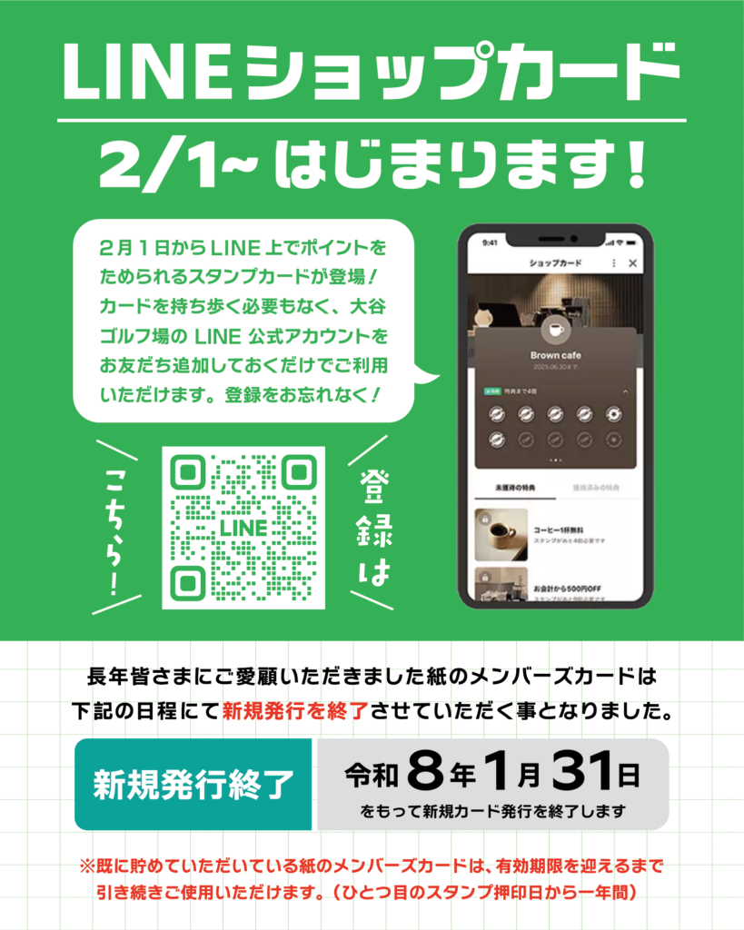 この度、2月1日(日)よりLINEショップカードを新しくスタートすることになりました。